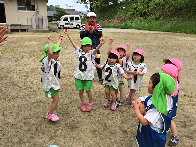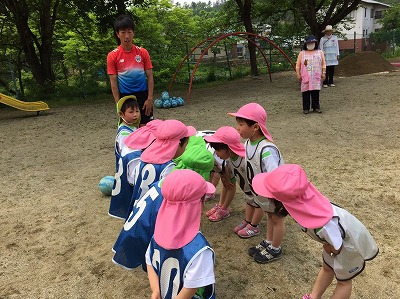 ウォーミングアップでは興道北部保育園のみんなのチームワークを試しました!