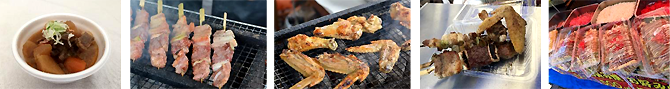 | 藤の里農場 | やまがた地鶏串焼き、三宝串、やまがた地鶏カレーうどん | 200~500円 |