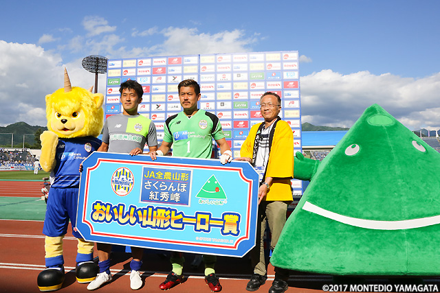 この試合のおいしい山形ヒーロー賞に選ばれたのは、ウノゼロ(1-0)の勝利らしく、最前線と最後列の2人です。