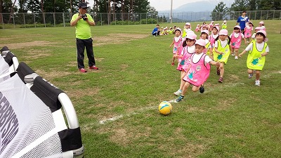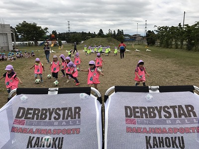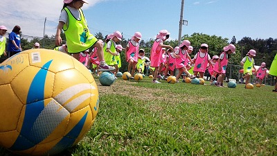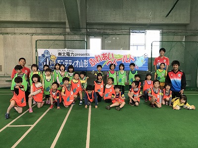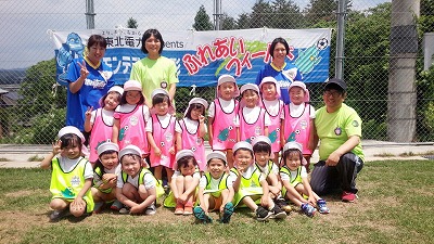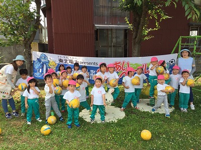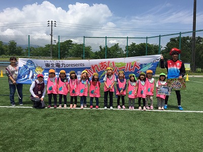 東北電力presentsふれあいフィールドでは地域貢献活動の一環として、幼稚園、保育園、小学校を対象にアカデミーコーチを派遣し実施しているサッカー教室です。
