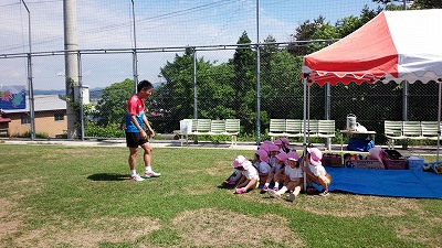 芝生の上での試合。休憩も挟みながら、たくさん走ってプレーしてくれました!