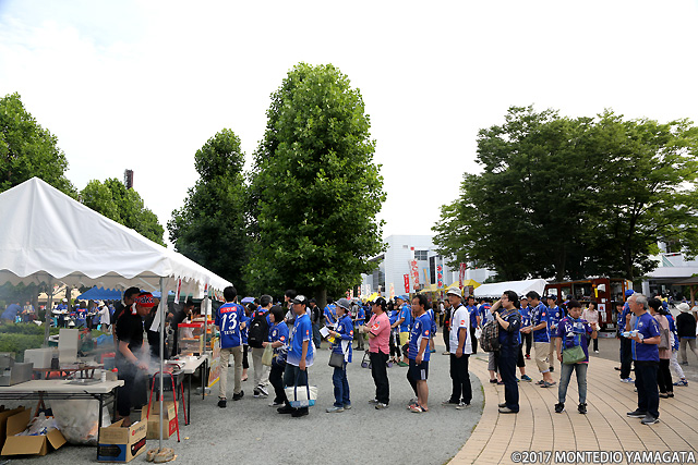 この試合はユニフォームサプライヤーであるnew balance様による「new balance match in YAMAGATA」として開催されました。グッズコーナーでは2017ユニフォームフェスタが行われ、すっかりお馴染みとなったクイックマーキング等が行われました。