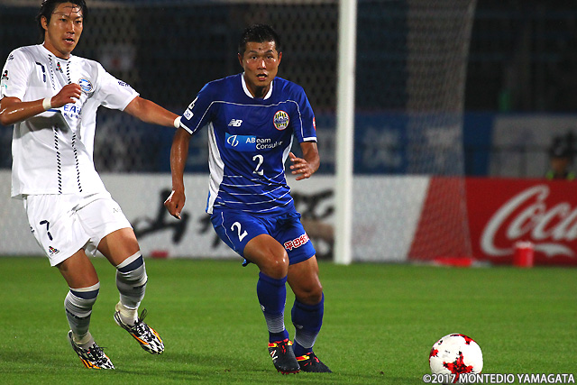 最終ラインの3バックの右に入った宇佐美宏和選手。6月21日に行われた天皇杯2回戦V・ファーレン長崎戦ではフル出場をしていますが、J2リーグ戦は今季初の出場となります。
