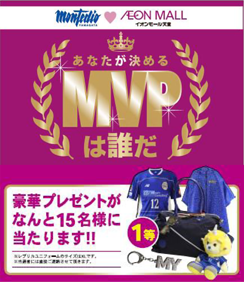 モンテディオ山形ホームゲームを対象に、試合ごとに活躍した選手にファン・サポーターの皆様から投票いただき年間のMVPを決定いたします。投票にはホームゲームチケット半券かシーズンシート会員番号のご提示が必要です。MVPに選ばれた選手に投票いただいた方の中から抽選で豪華景品がプレゼントされます。