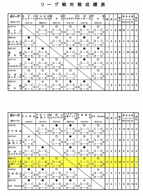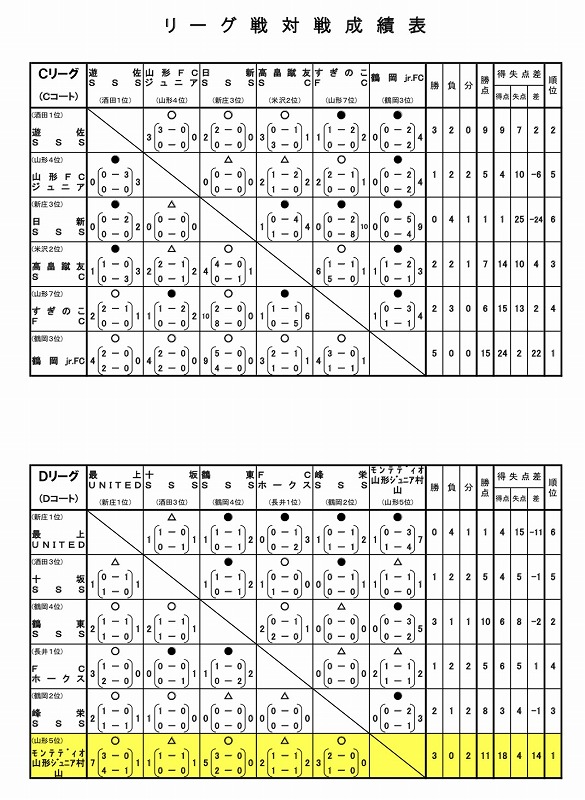 山形県U-10(ナカジマスポーツ杯)大会 ジュニア村山・ジュニア庄内大会結果
