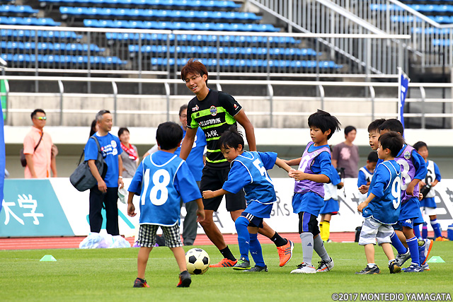 試合前のピッチ上では「アイジー工業株式会社 協賛 モンテディオ山形サッカースクール」が行われ、摂津颯登選手やモンテディオ山形アカデミーのコーチと一緒に、子ども達がサッカーを楽しみました。