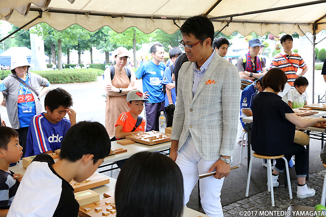 すっかり恒例となった将棋×サッカーコラボイベントでは、最近の将棋ブームもあってか、各イベントにたくさんの方が詰めかけます。プロ棋士指導対局や自由対局コーナーでの子ども達が真剣な眼差しはさすが将棋駒の街・天童。