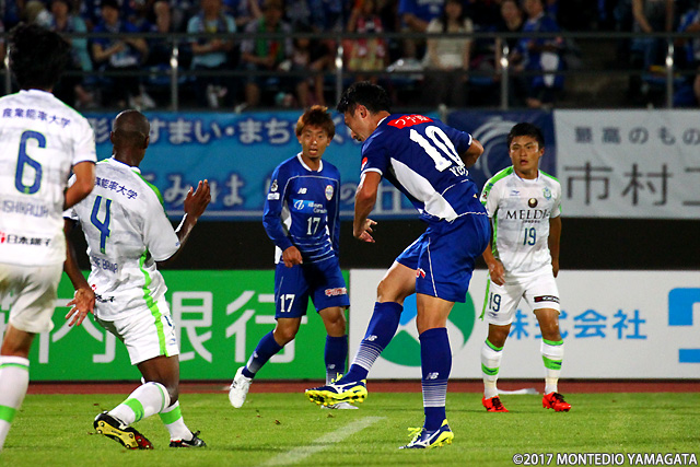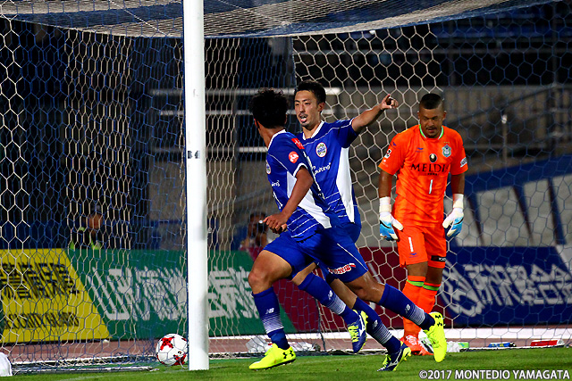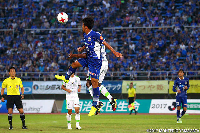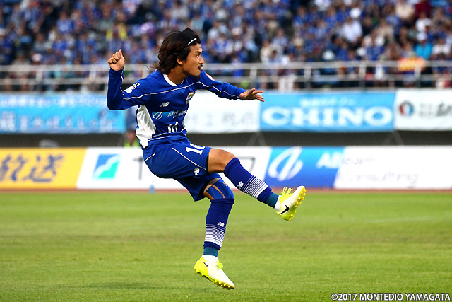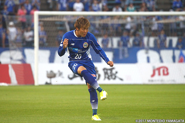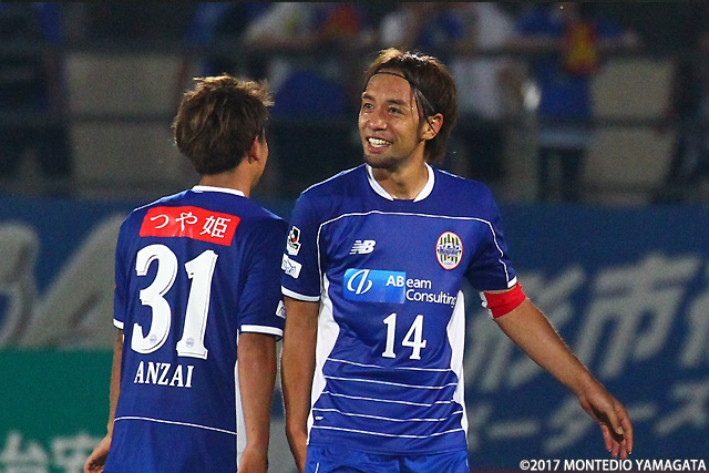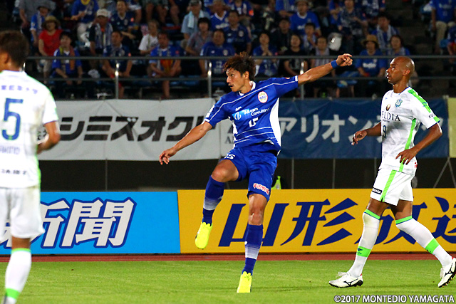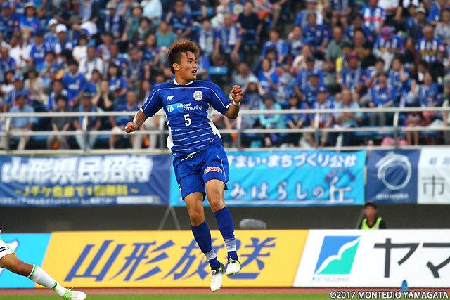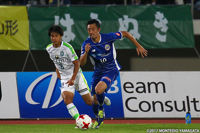 7月13日に柏レイソルから移籍加入となった安西海斗選手はスタメンでモンテディオ山形デビュー。実はこれがJリーグデビューともなった安西選手ですが、そうとは思えない落ち着きから効果的なプレーを見せます。