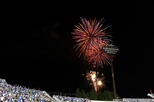 試合後打ち上げられた花火。3-0での快勝という結果もあり、より一層花火を皆さんに楽しんで頂けました。