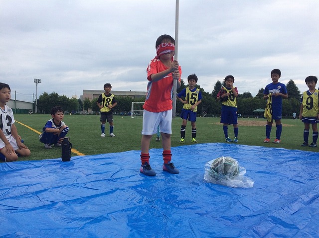 モンテディオ山形サッカースクールでは、スイカ割りもするんです!(今年初の試みです)