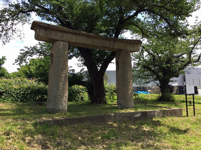 午前に試合を行った、県総合運動公園の第二運動広場から午後試合を行う石鳥居グラウンドまで徒歩で移動したのですが、移動中に石鳥居の名前の由来となった鳥居を偶然発見。