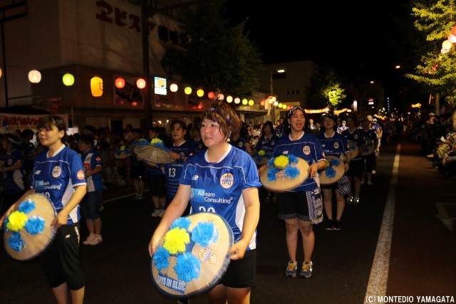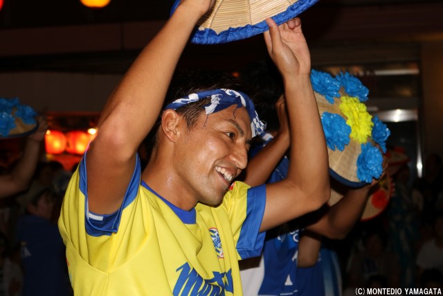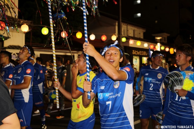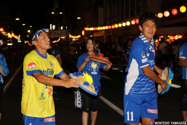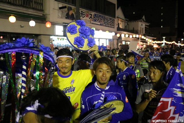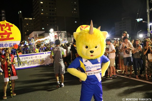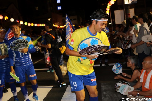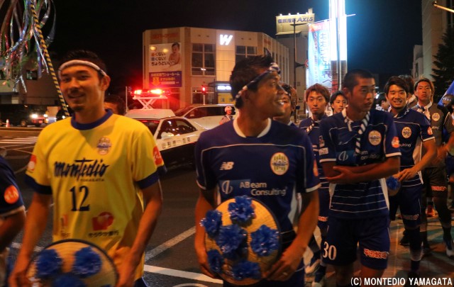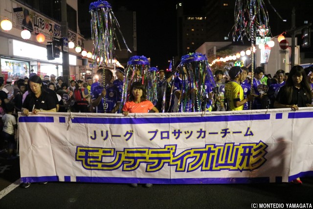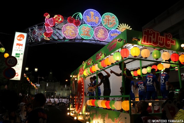 この地域に根を下ろし、地域の活力と元気を生み出すために活動を続けるモンテディオ山形、この祭りにもある地域を元気にするという共通の思いが、選手たちの盛り上がり、そしてサポーターの皆さん、沿道の盛り上がりにもつながっています。