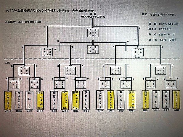 8/26(土)~27(日)に行われた2017JA全農杯チビリンピック小学生8人制サッカー大会山形県大会に出場しました。