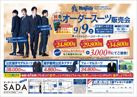 order suits SADA×モンテディオ山形2017オフィシャルスーツ採寸即売会概要