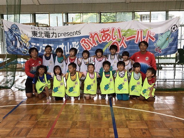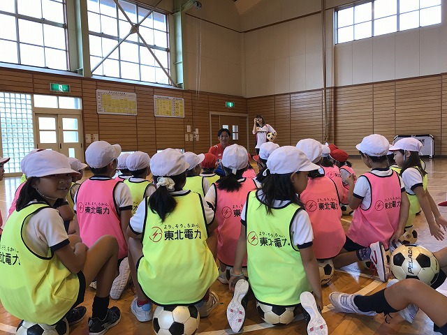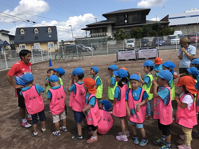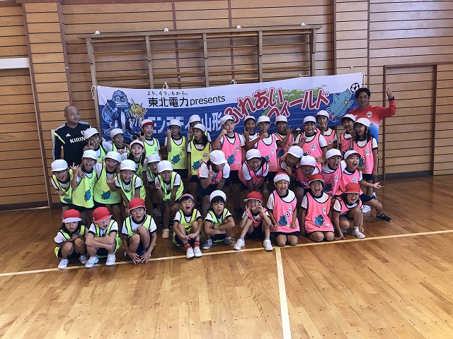 東北電力presentsふれあいフィールドでは地域貢献活動の一環として、幼稚園、保育園、小学校を対象にアカデミーコーチを派遣し、実施しているサッカー教室です。