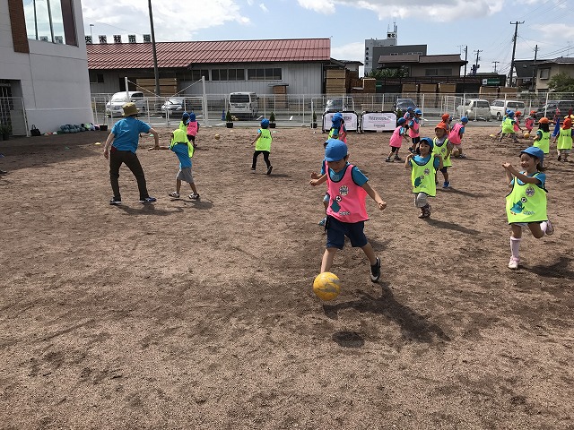 子どもたちも元気いっぱい。コーチ達と一緒に楽しんでサッカーをしてくれました。