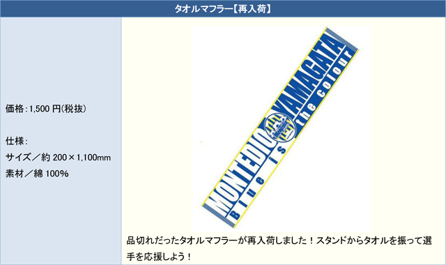公開日 2017.09.14 モンテディオ山形新商品入荷のお知らせ 2017年9月24日(日) 2017明治安田生命J2リーグ第34節 ロアッソ熊本戦において、次の通りモンテディオ山形グッズの新商品を販売いたしますのでお知らせします。ぜひこの機会に新商品をお買い求めください。 新商品販売概要 販売日時:2017年9月24日(日)11:30~ 販売場所:NDソフトスタジアム山形 中央エリア グッズ売店 #チケット ニュース一覧