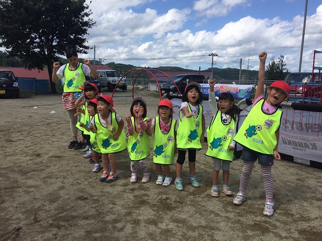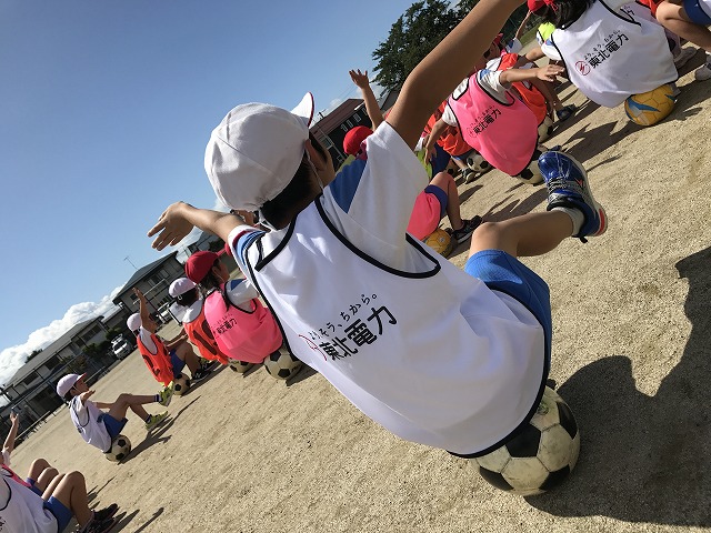 気持ちのいい蒼空の中、体を目一杯使ってサッカーを楽しみます!