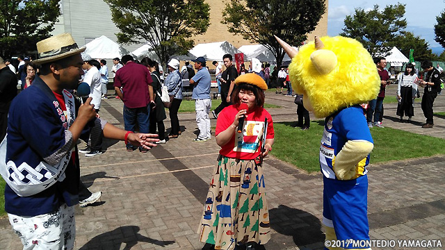 ステージでは山形出身の歌手Kiyoさんと一緒にPR頂きました。