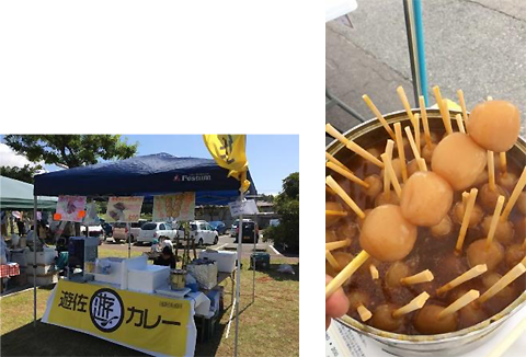遊佐町のお菓子やカレー、ジャムなどの特産品を販売します。また、玉こんとピタパンも販売しますのでお楽しみに。