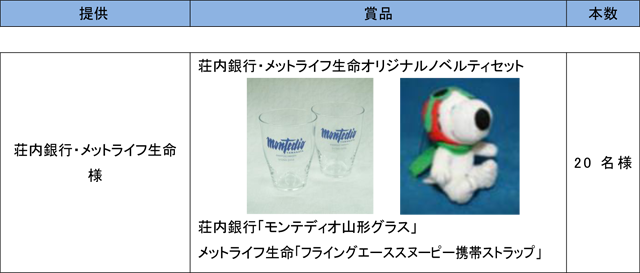 荘内銀行様・メットライフ生命様よりMVP選手へ、MVP賞としてセゾンファクトリー商品とスヌーピーぬいぐるみが贈呈されます。
