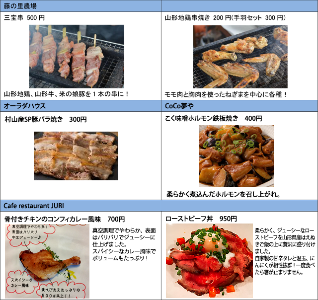 遊佐町のお菓子やカレー、ジャムなどの特産品を販売します。また、玉こんとピタパンも販売しますのでお楽しみに。