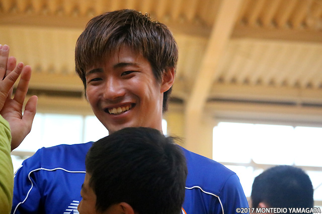 「小さい頃から夢に向かって大事にしていたことがあります。どんなことも諦めずにやりきること。そして一緒に夢を追いかけ、頑張ってくれる仲間を大事にすること。その仲間に負けないように頑張って努力していくこと。僕もまだまだ夢があります。そのために仲間に負けず、日々、努力して何事にも負けないで取り組みます。みんなも仲間を大事にし、やりきる心を持って頑張ってください。」