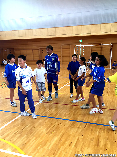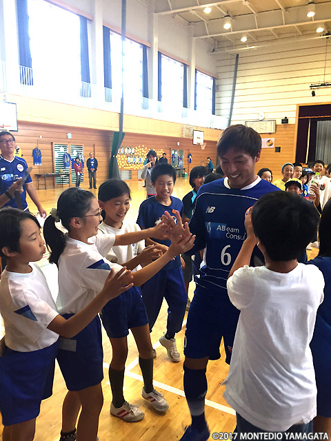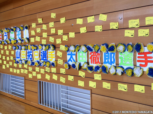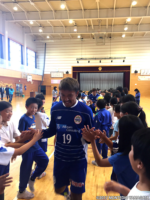 最後はみんなで記念撮影をし、子供達から元気いっぱいのハイタッチで選手を見送ってくれました。東根市立中部小学校の皆さん、ありがとうございました。