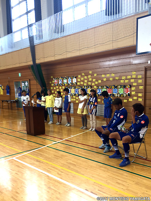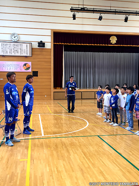 2017年10月4日(火)に山田拓巳選手、太田哲郎選手の2名が東根市立中部小学校に夢クラスで参加しました。夢クラスへの参加児童は5年生の101名です。