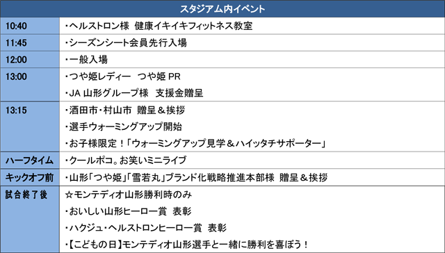 この試合は山形「つや姫」「雪若丸」ブランド化戦略推進本部様による「つや姫サンクスマッチ」として開催します。楽しいイベント盛りだくさんですので、ご家族おそろいでご来場ください。