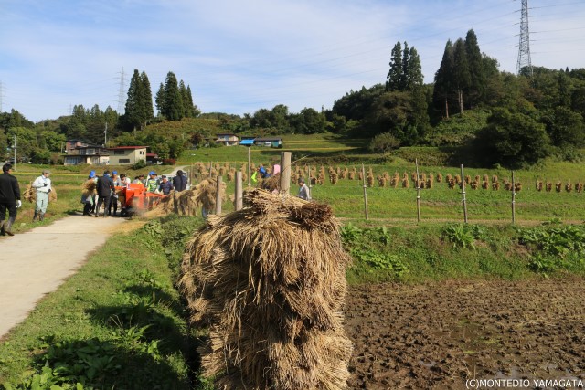 昨日2017年10月8日、山形県山辺町大蕨地区の棚田にて今年の棚田米の収穫、脱穀作業が行われました。