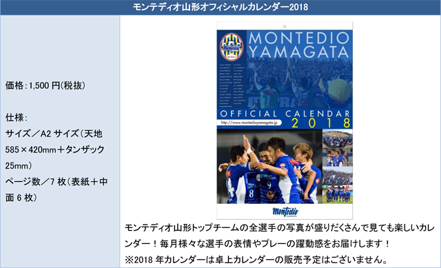 モンテディオ山形オフィシャルカレンダー2018販売