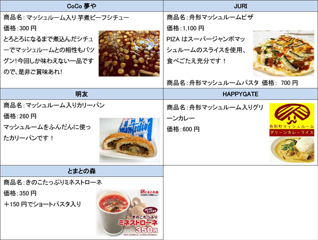 舟形マッシュルームを使用した様々なメニューを販売しますので、是非ご賞味ください。