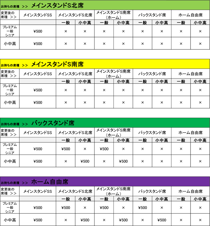 ・本サービスは、シーズンシート会員の方のみご利用いただけます。「ダウングレード」、「同料金の別席種への変更」はできませんのでご注意ください。