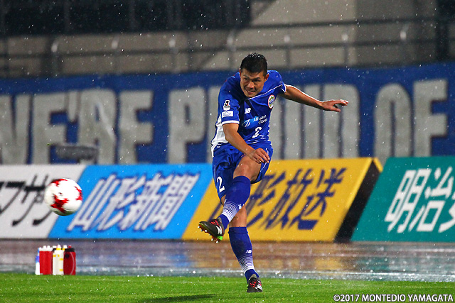 朝から降り続く雨で、水をたっぷりと含んだピッチコンディションをものともせず、持ち前のテクニックを披露した汰木康也選手。左サイドから攻撃を牽引します。