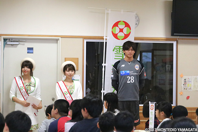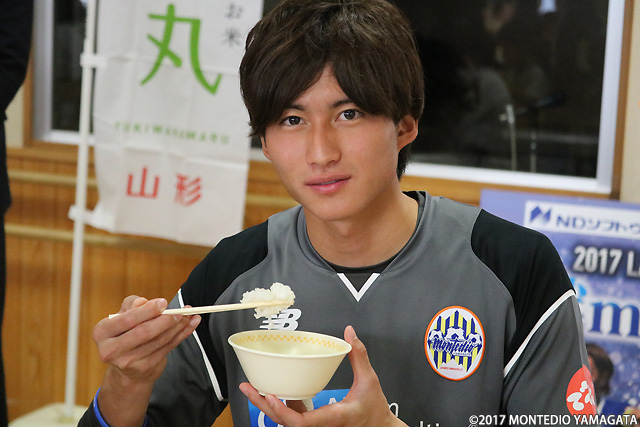 本日(2017年11月2日(火))に 山形県内の学校給食で一斉に行われた山形「つや姫」「雪若丸」ブランド化戦略推進本部様主催の「雪若丸」学校給食に、摂津颯登選手が参加しました。摂津選手が伺った学校は、山形市の中心街に位置する山形市立第一小学校。全校児童が笑顔で迎えて頂きました。