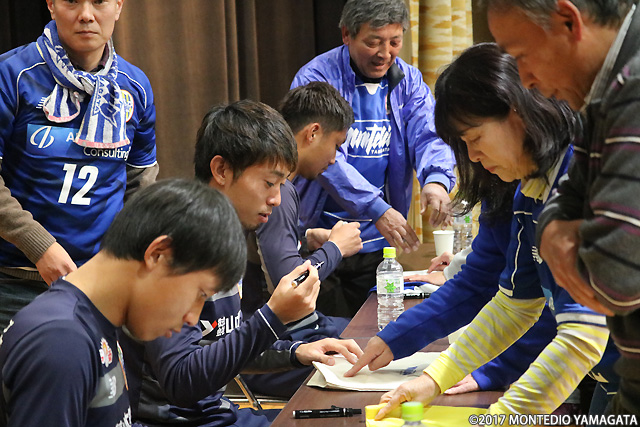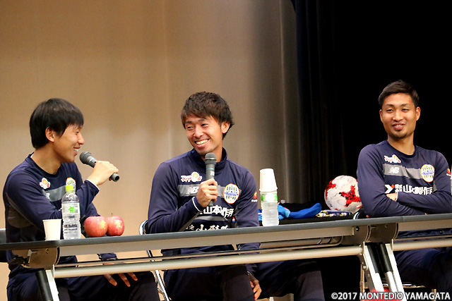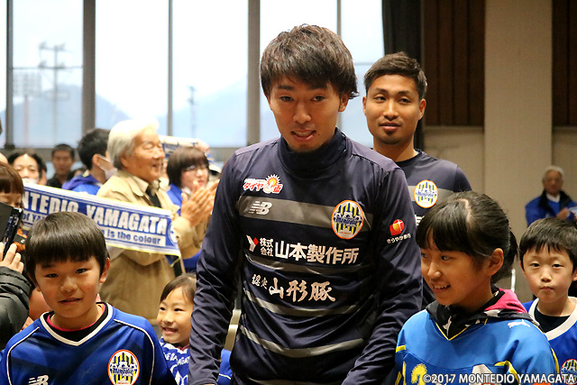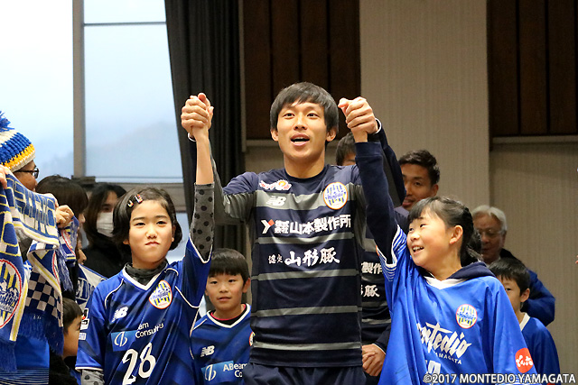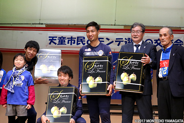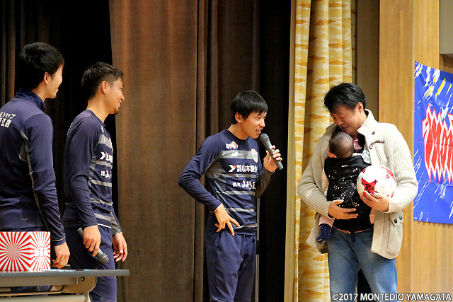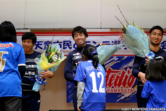 2017年11月27日(日)山形県天童市の中部公民館で行われた天童市モンテ応援隊主催「天童市民とモンテ選手の交流会」に栗山直樹選手、松岡亮輔選手、中村駿選手が参加しました。