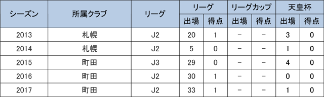 向陽台サッカースポーツ少年団→千歳向陽台中→コンサドーレ札幌ユース・U-18→東洋大→コンサドーレ札幌→FC町田ゼルビア