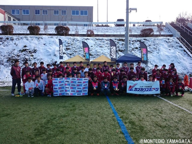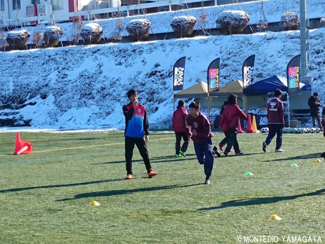 昨日2017年12月21日、山形明正高校サッカー部の部員の皆さまを対象に、弊社スポンサーでもあるかい株式会社明治様主催によるカスカワスポーツ特別企画 モンテディオ山形サッカークリニック presented by meiji が同高校のグラウンドで行われました。