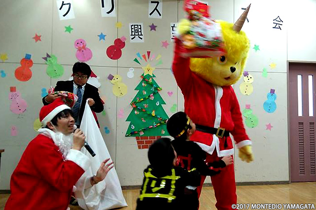 2017年12月23日、ディーオがサンタクロースになって、山形県内の福祉施設を訪問してきました。