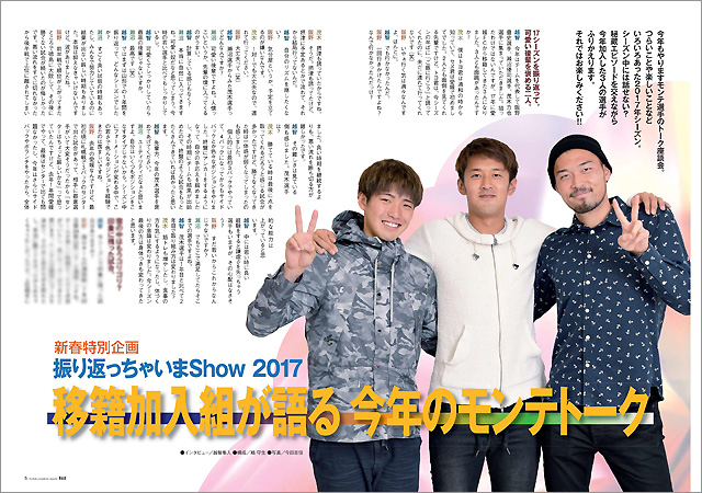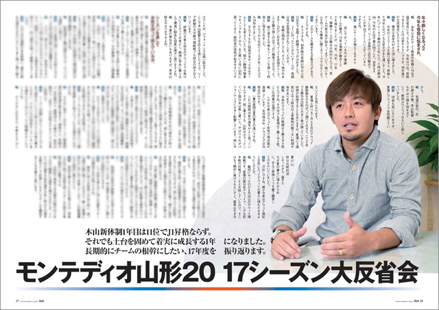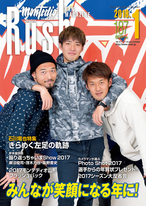 Rush新年1月号は17シーズンモンテディオ山形の締めくくり号です。選手座談会では阪野豊史選手、瀬沼優司選手、茂木力也選手が登場。他では聞けない秘蔵ネタを交えながら17シーズンを振り返りました。