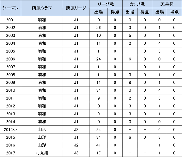 ※(備考)2014シーズンJ1昇格プレーオフ準決勝vs.ジュビロ磐田戦にてゴールを記録