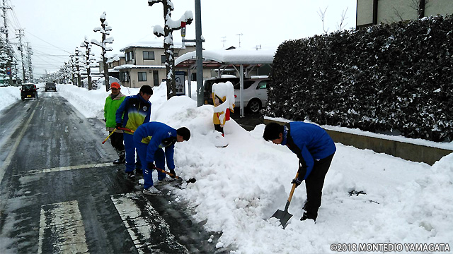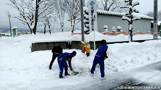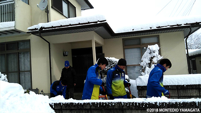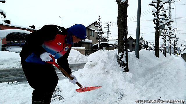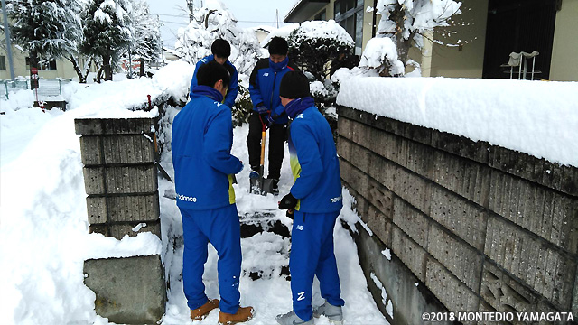 今年も恒例となったモンテディオ山形ユースの選手たちによるボランティアの雪かきが、長岡モンテサポーターズクラブや長岡地域社会福祉協議会のご協力の元、同地区で行われました。