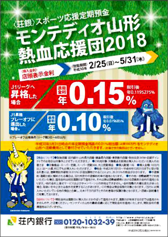 <荘銀>スポーツ応援定期預金「モンテディオ山形熱血応援団2018」取扱開始について