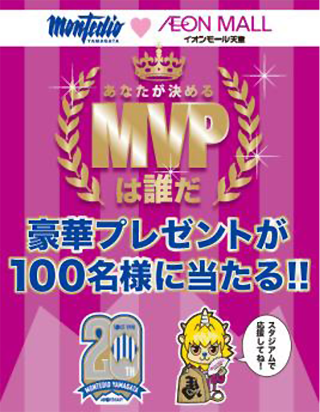 モンテディオ山形ホームゲームを対象に、試合ごとに活躍した選手にファン・サポーターの皆様から投票いただき年間のMVPを決定いたします。投票にはホームゲームチケット半券かシーズンシート会員番号のご提示が必要です。MVPに選ばれた選手に投票いただいた方の中から抽選で豪華景品がプレゼントされます。