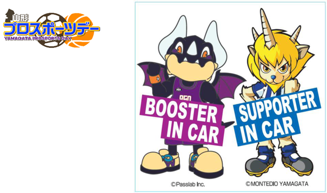モンテディオ山形マスコットのディーオと山形ワイヴァンズマスコットのヴァンゴーをあしらった初コラボグッズのカーステッカーが登場!是非マイカーに貼って山形県のプロスポーツを一緒に盛り上げて下さい☆