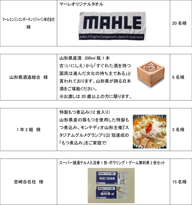 ※モンテディオ山形が勝利以外の場合は実施いたしません。