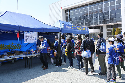 11:30より整理券を配布いたします。鍋のふるまいを受け取る際、整理券が必要となりますので、ご希望者は必ず整理券をお受け取りください。引換は試合開始までとなりますので、予めご了承ください。