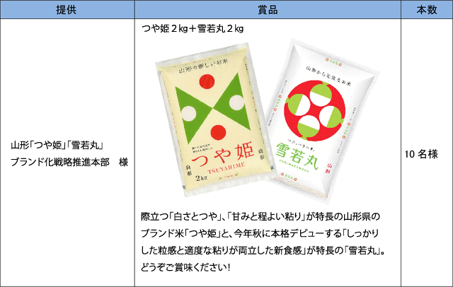 エスコートキッズの皆様には、つや姫・雪若丸キューブ米2合をセットでプレゼントいたします。