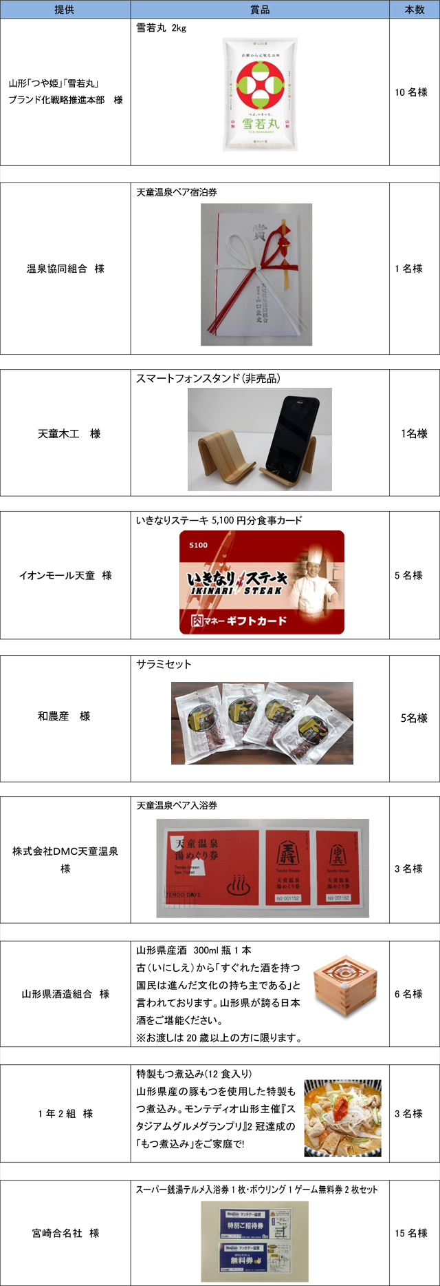 温泉宿泊券など豪華賞品が当たる抽選会を実施いたします。詳細は「天童市お楽しみ抽選会 詳細について」をご覧下さい。